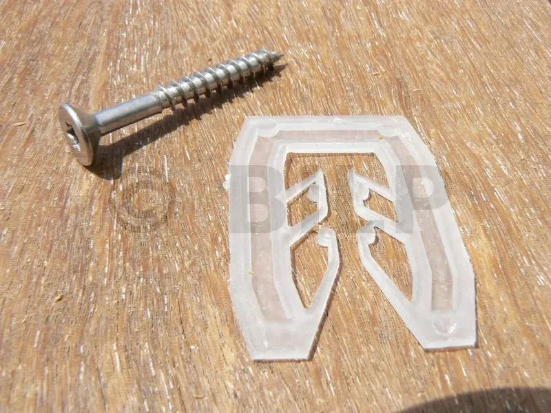 Jeder Keil hat einen inneren Kamm (oder eine Gabel), der es ermöglicht, den Keil oder einen Clusterkeil auf eine Schraube zu klemmen. Es ist möglich, Schrauben, Bodenzüge oder Gewindestangen mit einem Durchmesser von 3 bis 9 mm effektiv zu befestigen. Dadurch wird sichergestellt, dass der Keil auch bei Bewegung in seiner Halterung bleibt. Die Hälfte der Keilen hat eine kleine Lasche, mit der Sie sie einsetzen und unter einem begrenzten Raum, z.B. unter einem Balken, leicht verschieben können.