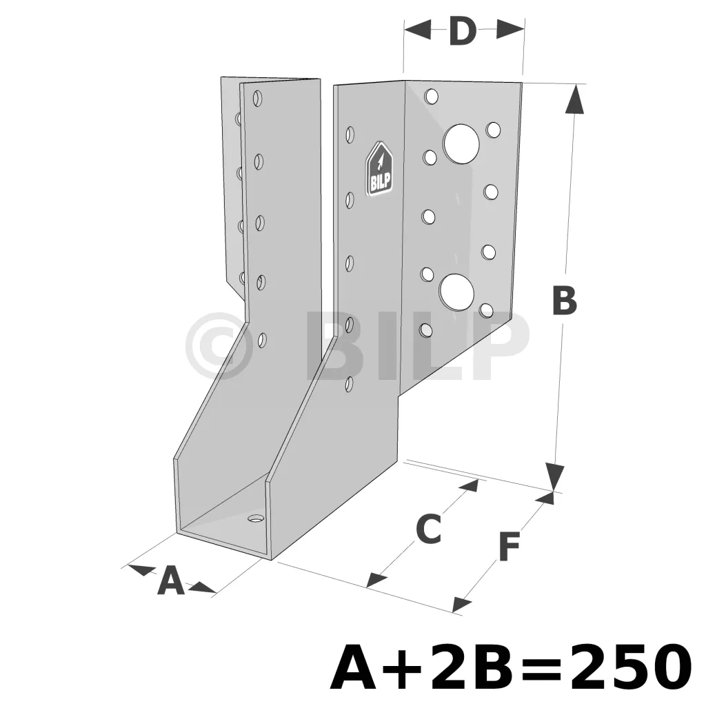Balkenschuh mit innenliegenden Schenkeln - A4 Edelstahl - Réf. SAEX250/1.5X