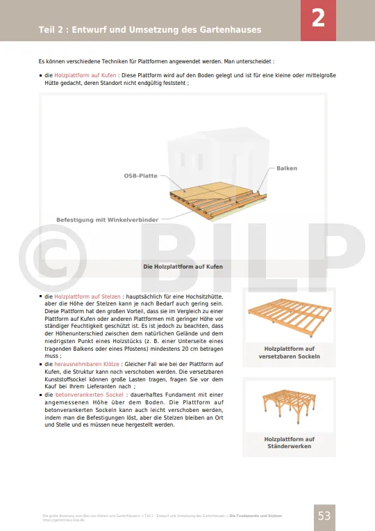 Konkrete Informationen für Ihr Projekt. Alle Geheimnisse, alle Tipps und Tricks, damit Ihre Hütte, Ihr Gartenhaus, Ihre Garage oder Ihr Anbau gelingt. Alle Techniken, alle Produkte werden Ihnen objektiv und unabhängig beschrieben. Detaillierte Ansichten beschreiben Ihnen alle Schritte des Baus.