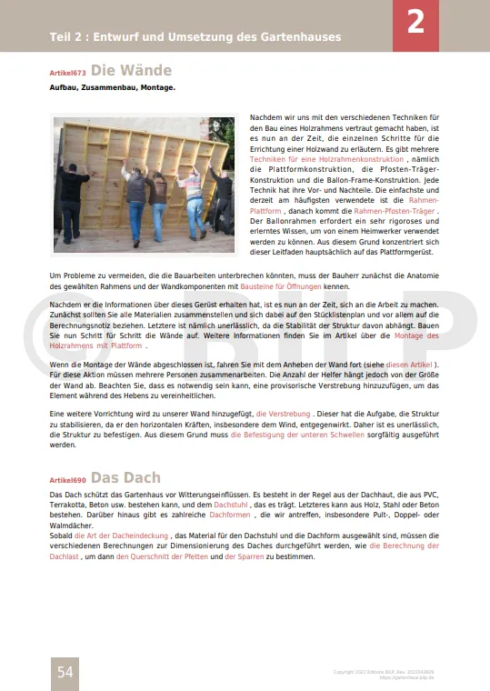 - die Anleitung zum Bau von Holzrahmenkonstruktionen