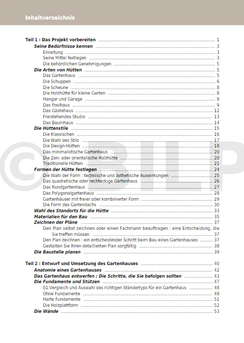 - die Anleitung zum Bau von Gartenhäusern und -hütten