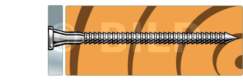 - Die konische Form unter dem Kopf ermöglicht den vollständigen Kontakt des Nagels mit dem Loch,