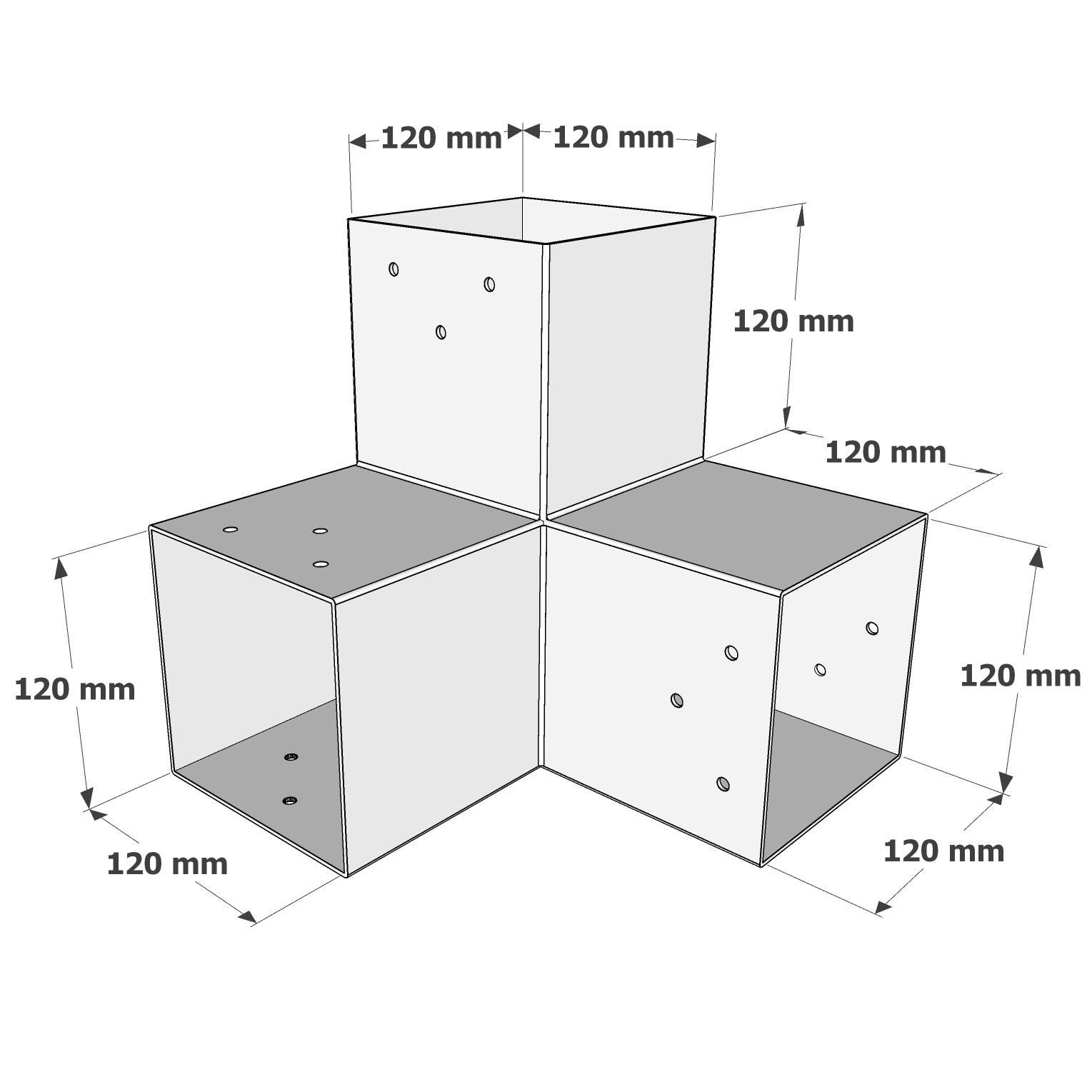 Es wird in einem Außenwinkel verwendet. Dieser Anschluss ermöglicht die Aufnahme einer großen 120x120mm-Steckdose, die senkrecht zu einer 120x120mm-Steckdose steht, die insgesamt von einem 120x120mm-Vertikaltopf unterstützt wird.