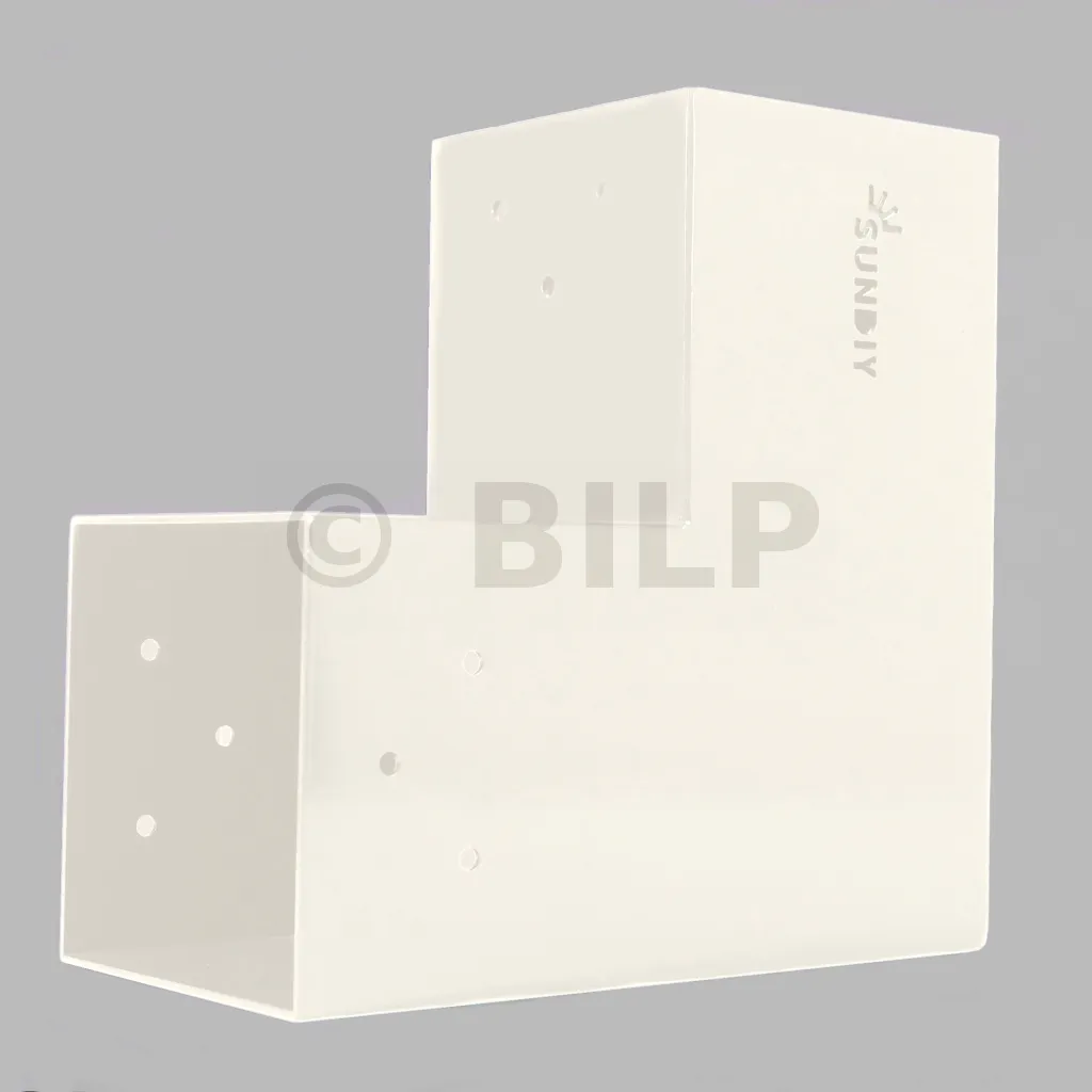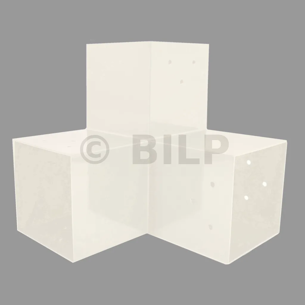Es wird in einer Außenecke verwendet. Mit diesem Verbinder können Sie einen 90 x 90 mm großen Balken senkrecht mit einem anderen Balken oder mit einem 90 x 90 mm großen vertikalen Pfosten verbinden.