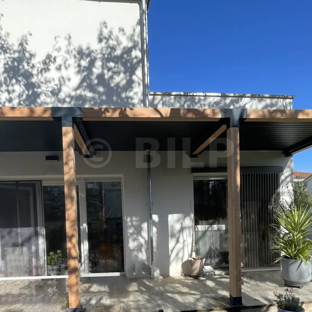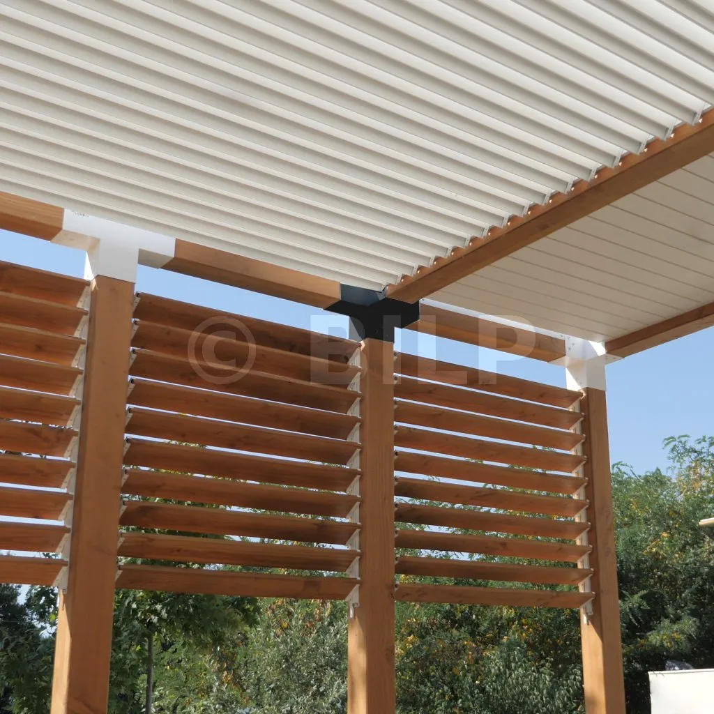 Damit kann eine 120x120mm-Stütze senkrecht zu einem 120x120mm-Chevron angebracht werden, die insgesamt von einem 120x120mm-Vertikaltopf unterstützt wird.