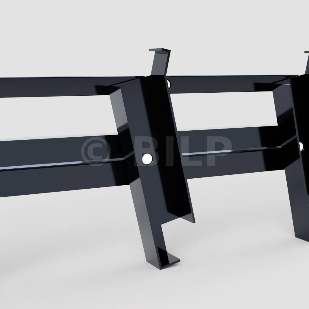Abstand zwischen den Stützen: Unter der Annahme, dass der Mechanismus zwischen zwei Balken befestigt ist, muss der Abstand zwischen diesen beiden Balken gleich der Länge der Lamellen + 35 mm sein: 2 x 15 mm (Breite des Mechanismuskörpers) + 5 mm Spiel.