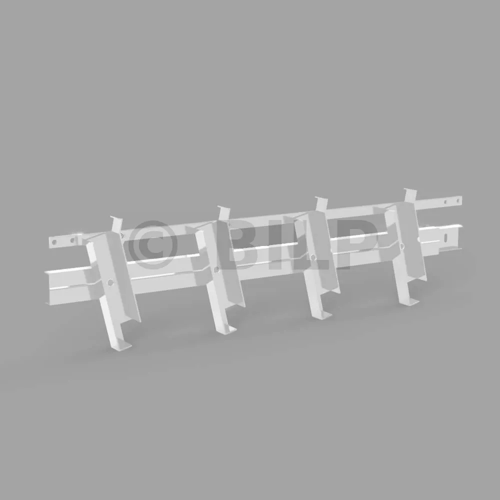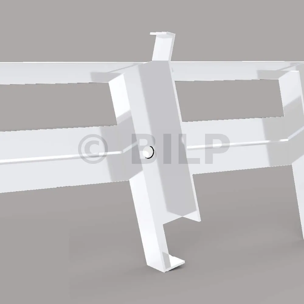 Abstand zwischen den Stützen: Unter der Annahme, dass der Mechanismus zwischen zwei Balken befestigt ist, muss der Abstand zwischen diesen beiden Balken gleich der Länge der Lamellen + 35 mm sein: 2 x 15 mm (Breite des Mechanismuskörpers) + 5 mm Spiel.