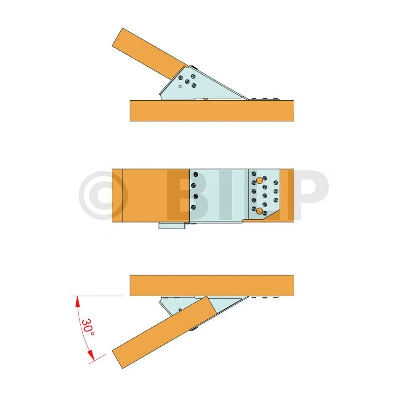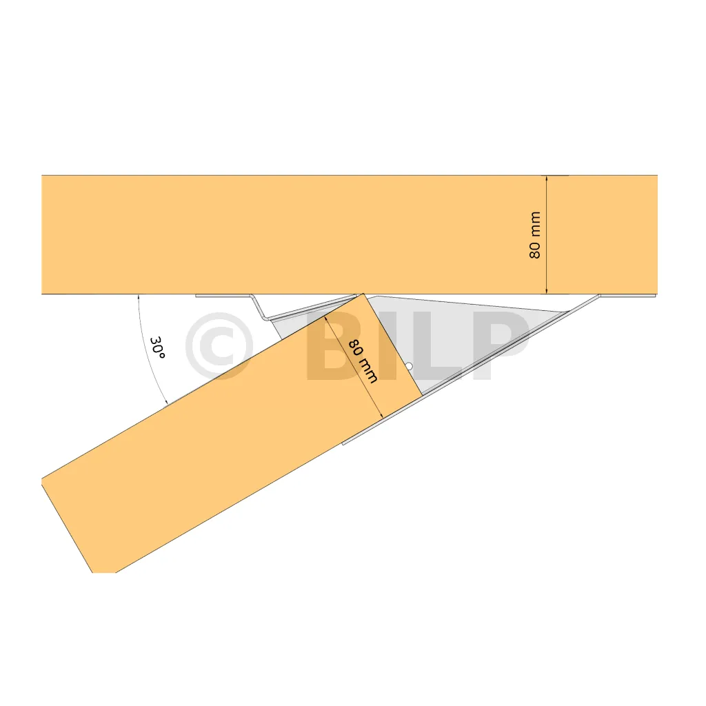 Der Holzbalkenschuh mit variablem Winkel für Dachstühle wurde für Verbindungen zwischen 10° und 30° oder 15° und 30° entwickelt. Er ist für Dachstühle (38 mm) und doppelte Dachstühle (80 mm) erhältlich.