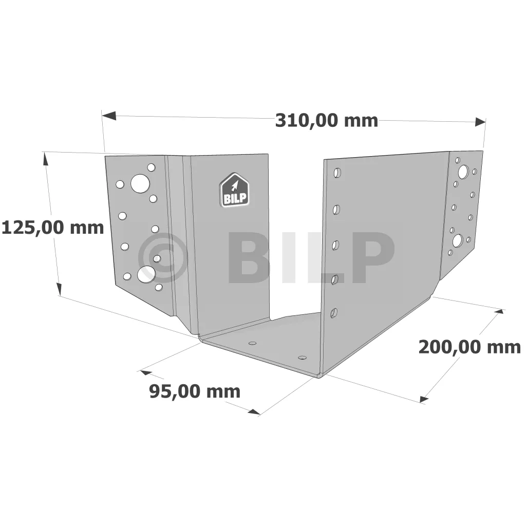 3. Passen Sie den Balkenschuh an die Markierungen an : Der Balkenschuh sollte oben etwas weiter geöffnet sein als unten, um die Montage des Nebenträgers zu erleichtern,