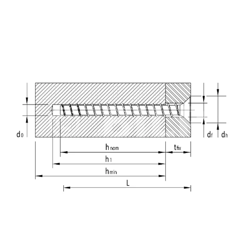 - Durchmesser der Durchgangsbohrung im zu befestigenden Element,df7mm
