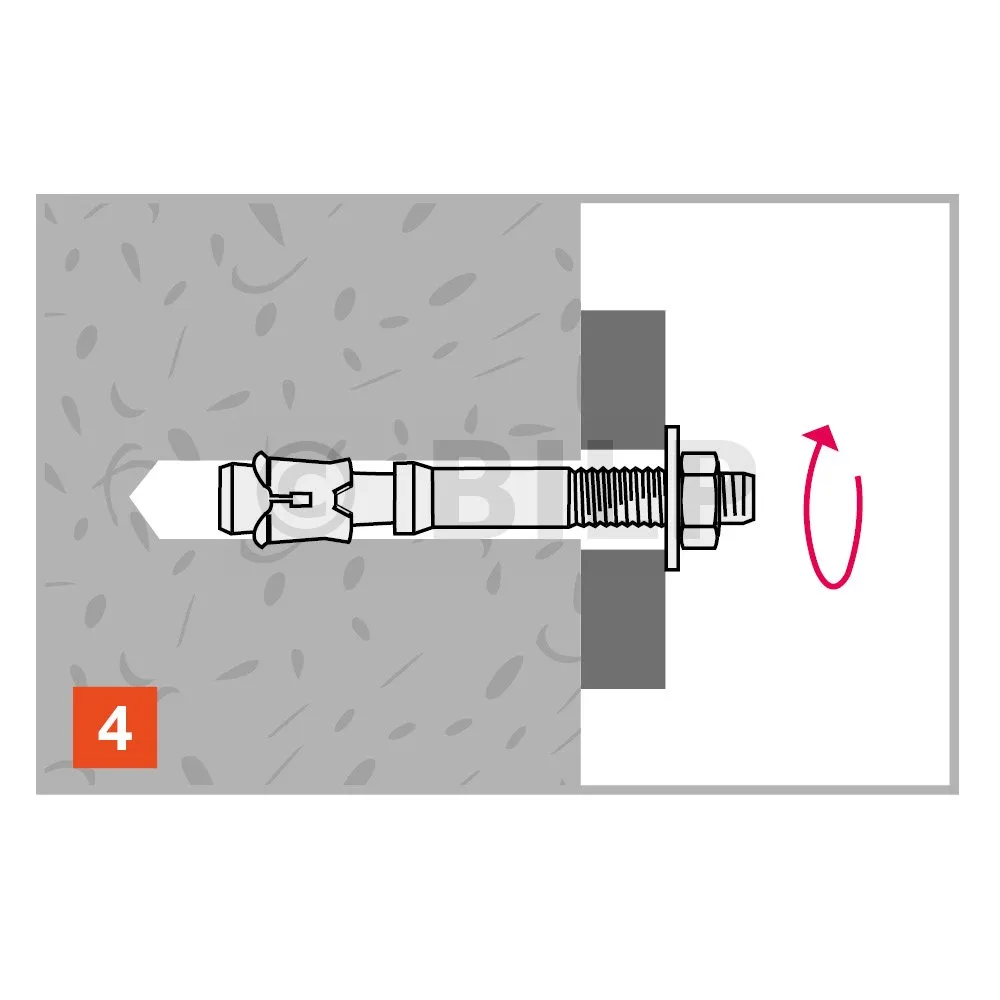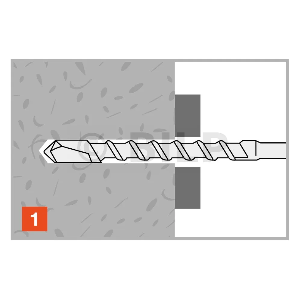 - Montage durch das zu befestigende Element, Bohr-Ø = Dübel-Ø,