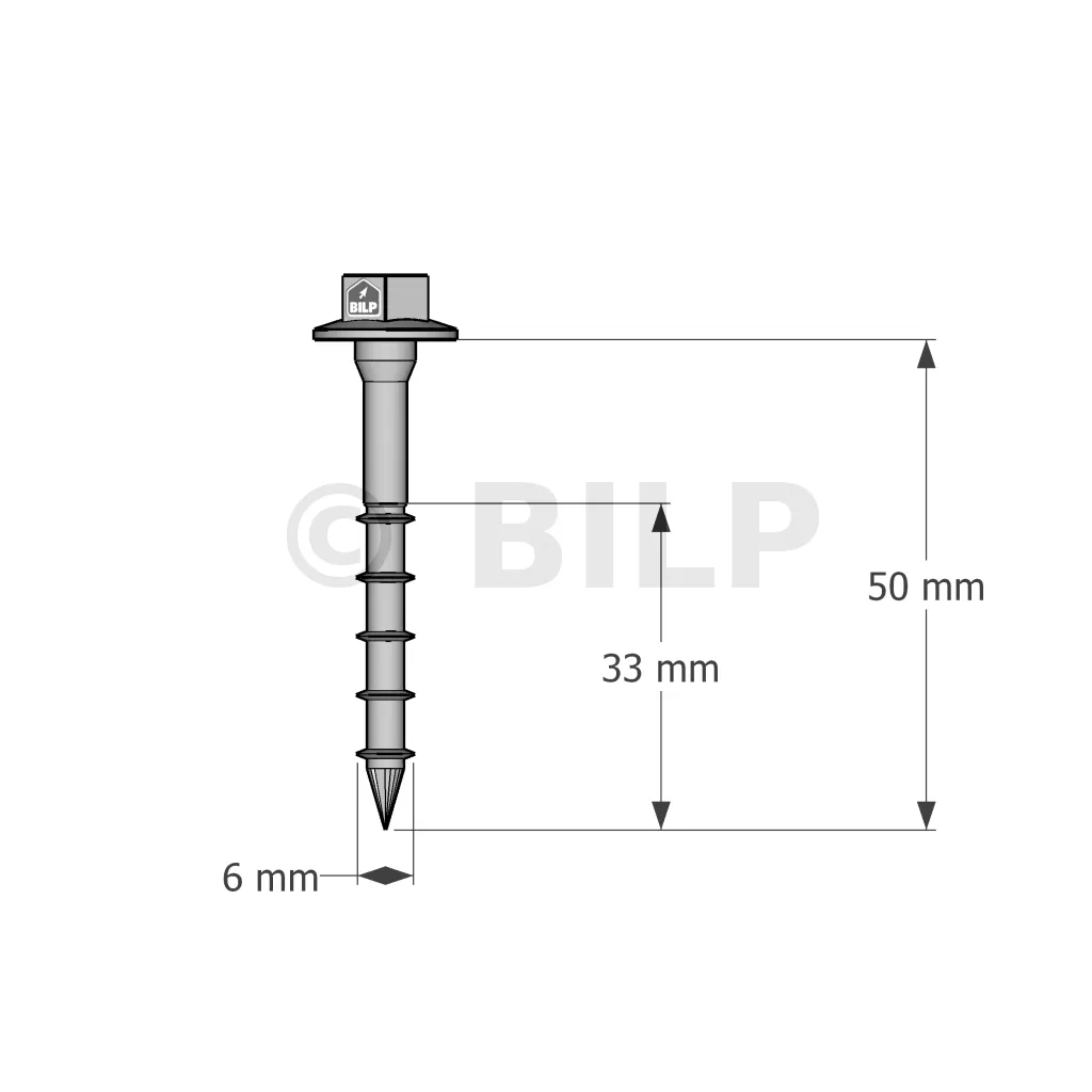 - Sechskantkopf : perfekter Halt der Stahlplatte auf Holz dank seines breiten Kopfes,