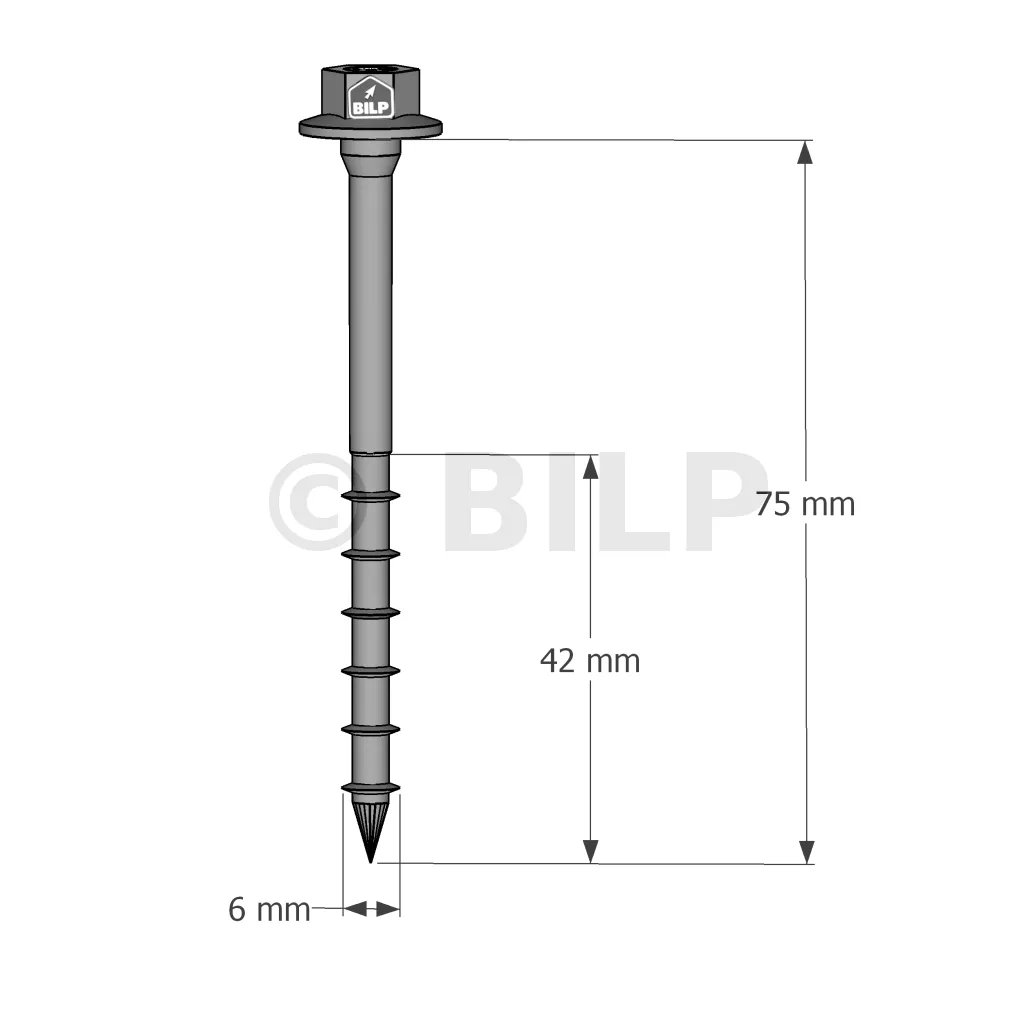 - Sechskantkopf : perfekter Halt der Stahlplatte auf Holz dank seines breiten Kopfes,