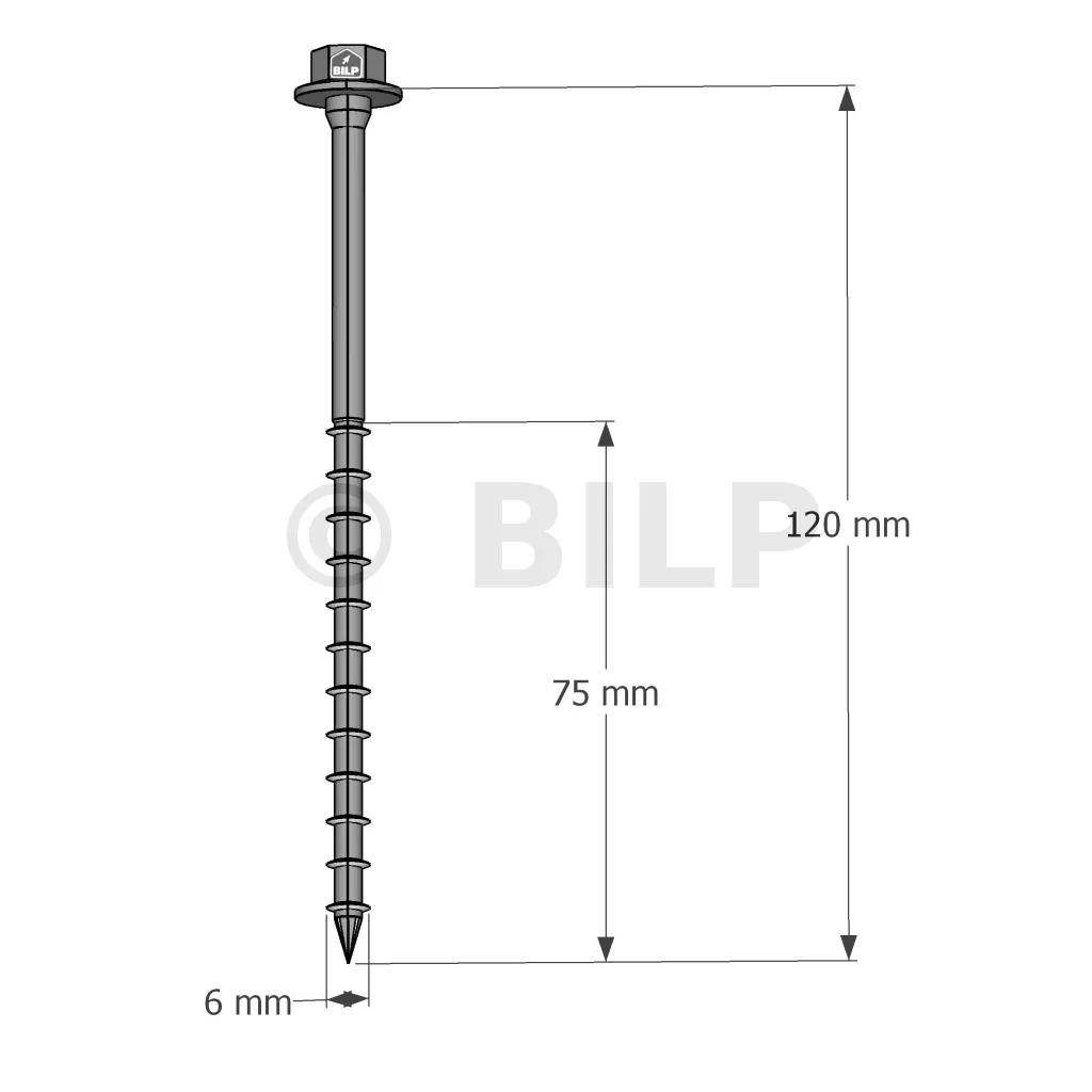 - Sechskantkopf : perfekter Halt der Stahlplatte auf Holz dank seines breiten Kopfes,