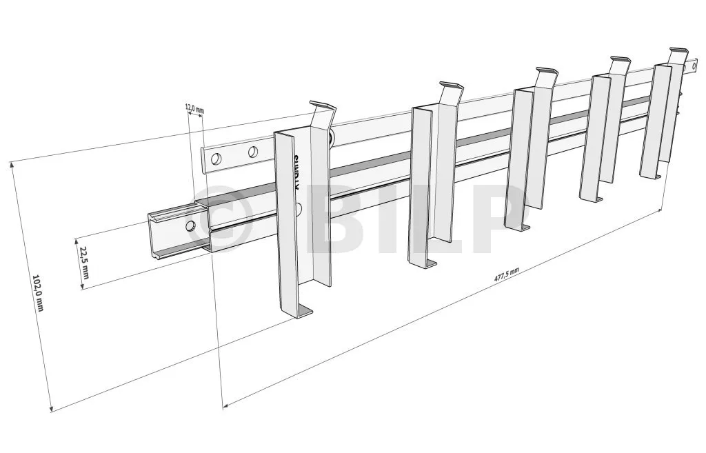 2. Beispiel: eine bioklimatische Pergola, deren Dach 600 cm breit und 400 cm tief ist. Mit Aluminiumlamellen können wir eine Breite von bis zu 200 cm abdecken. Sie benötigen also mindestens 3 Mechaniklinien (600 / 200 = 3). Auf der Tiefe können wir 400 / 47,5 = 8,4 anordnen, also 8 Mechanismen. Am Ende verbleiben 20 cm, die mit einem zusätzlichen Mechanismus gefüllt werden können, aus dem wir 3 der 5 Klingenstützspitzen herausgeschnitten haben. Daher müssen 3 x (8 + 1) = 27 Mechanismen bestellt werden.