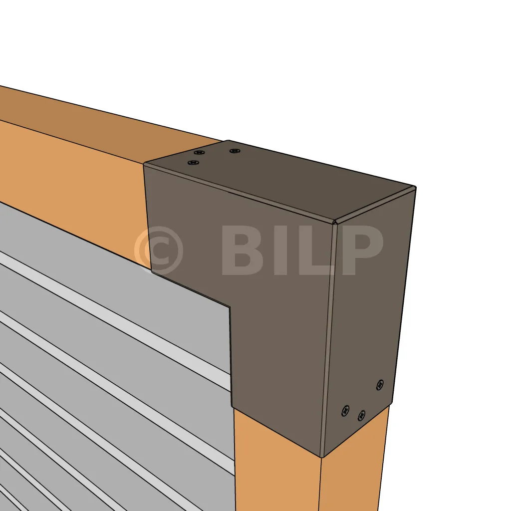 Es wird in einer Außenecke verwendet. Mit diesem Verbinder können Sie einen 90 x 90 mm großen Balken senkrecht mit einem anderen Balken oder mit einem 90 x 90 mm großen vertikalen Pfosten verbinden.