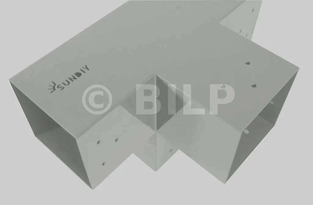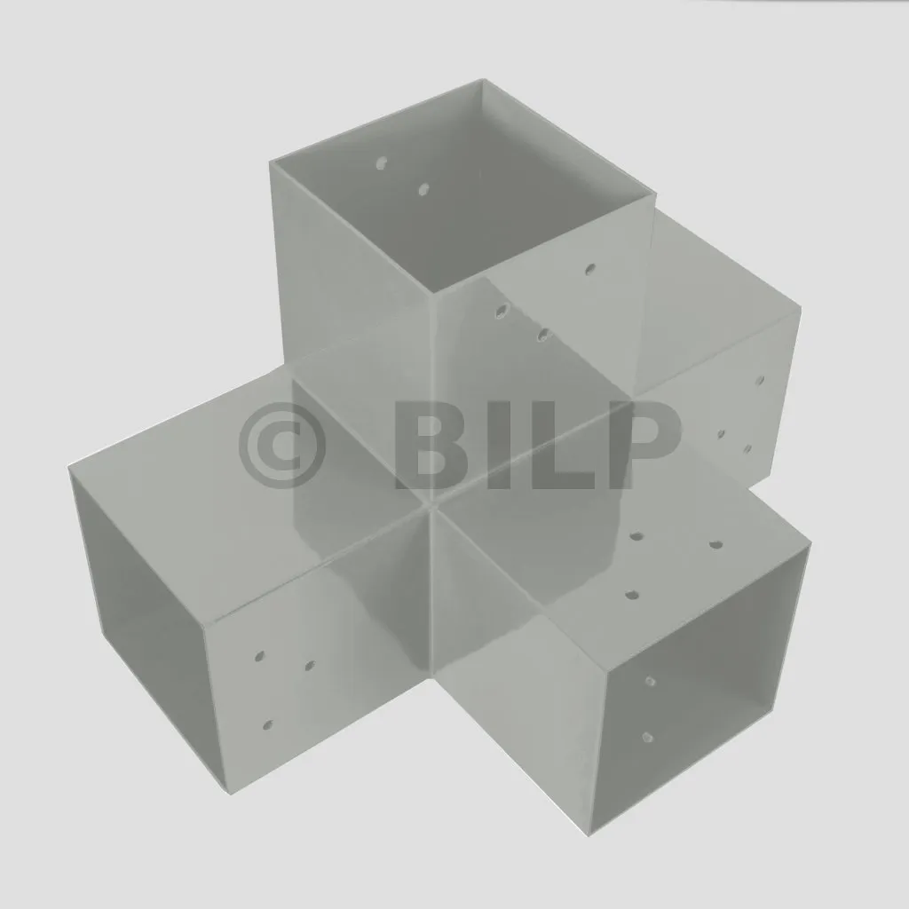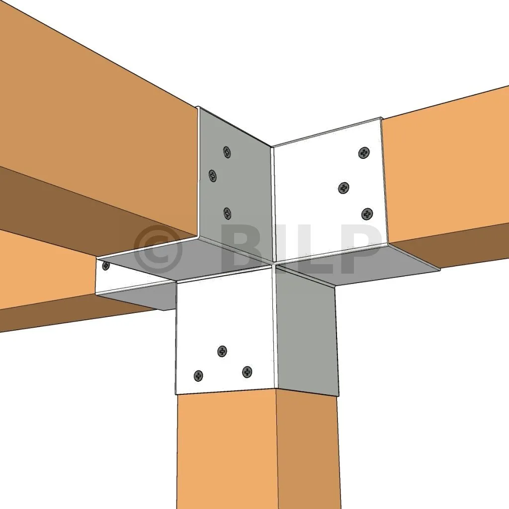 Damit können Sie einen 90 x 90 mm großen Balken senkrecht mit einem 90 x 90 mm großen Sparren verbinden, wobei das Ganze von einem 90 x 90 mm großen vertikalen Pfosten getragen wird.