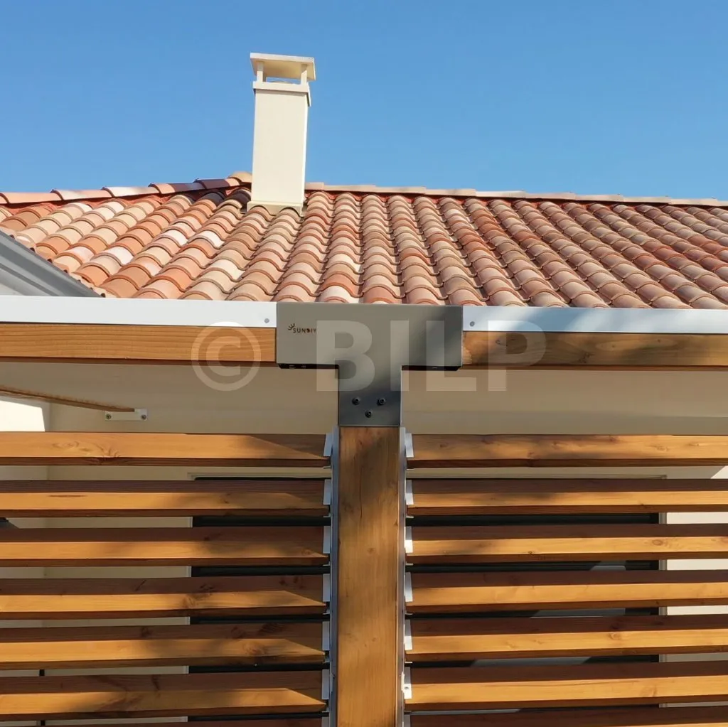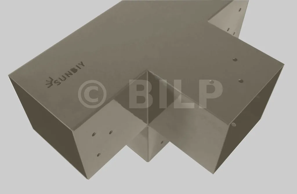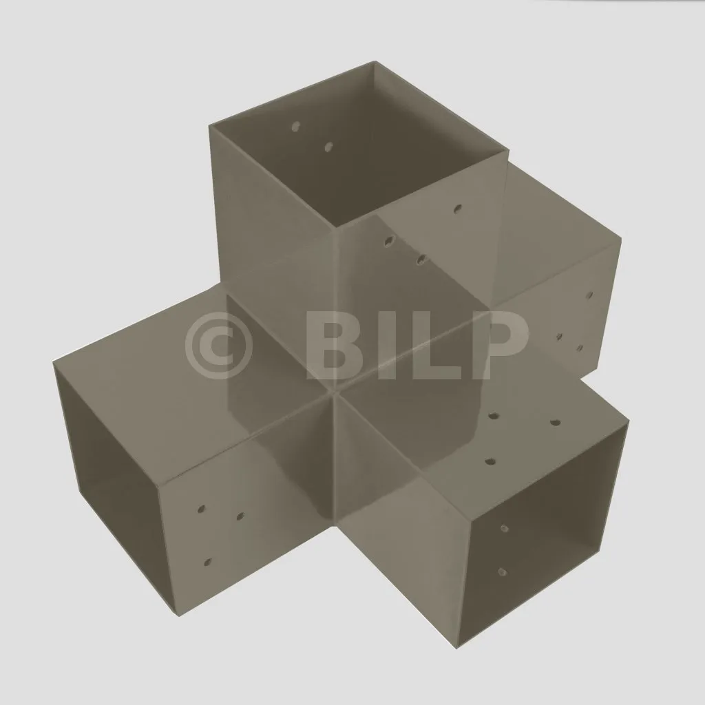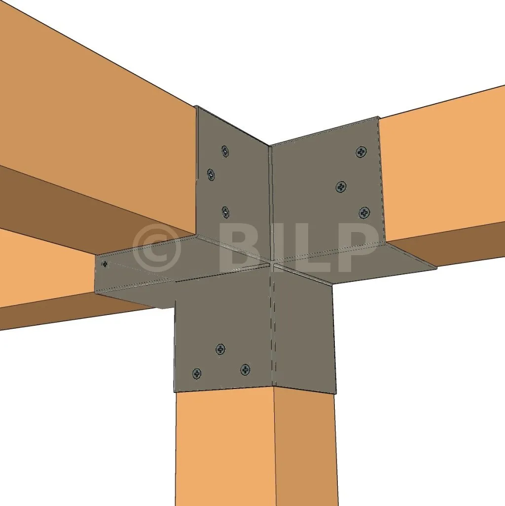 Damit können Sie einen 90 x 90 mm großen Balken senkrecht mit einem 90 x 90 mm großen Sparren verbinden, wobei das Ganze von einem 90 x 90 mm großen vertikalen Pfosten getragen wird.
