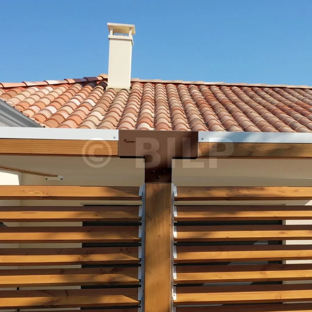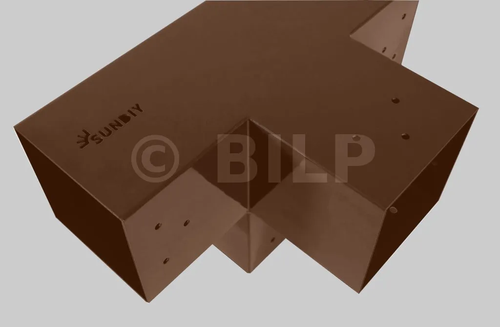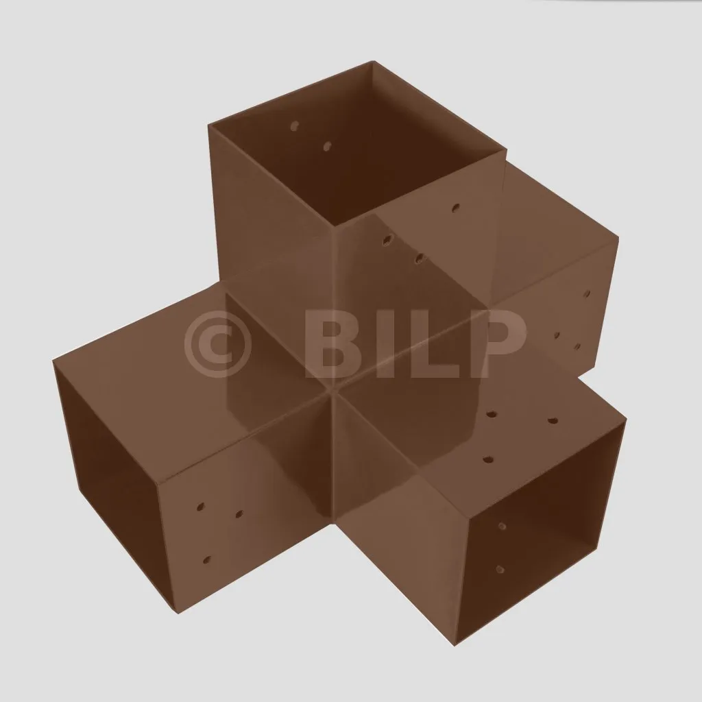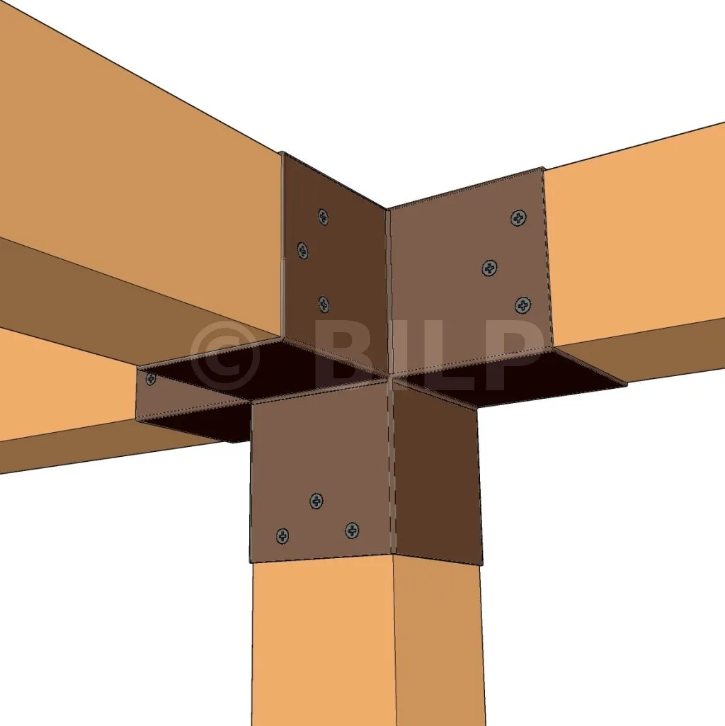 Damit können Sie einen 90 x 90 mm großen Balken senkrecht mit einem 90 x 90 mm großen Sparren verbinden, wobei das Ganze von einem 90 x 90 mm großen vertikalen Pfosten getragen wird.