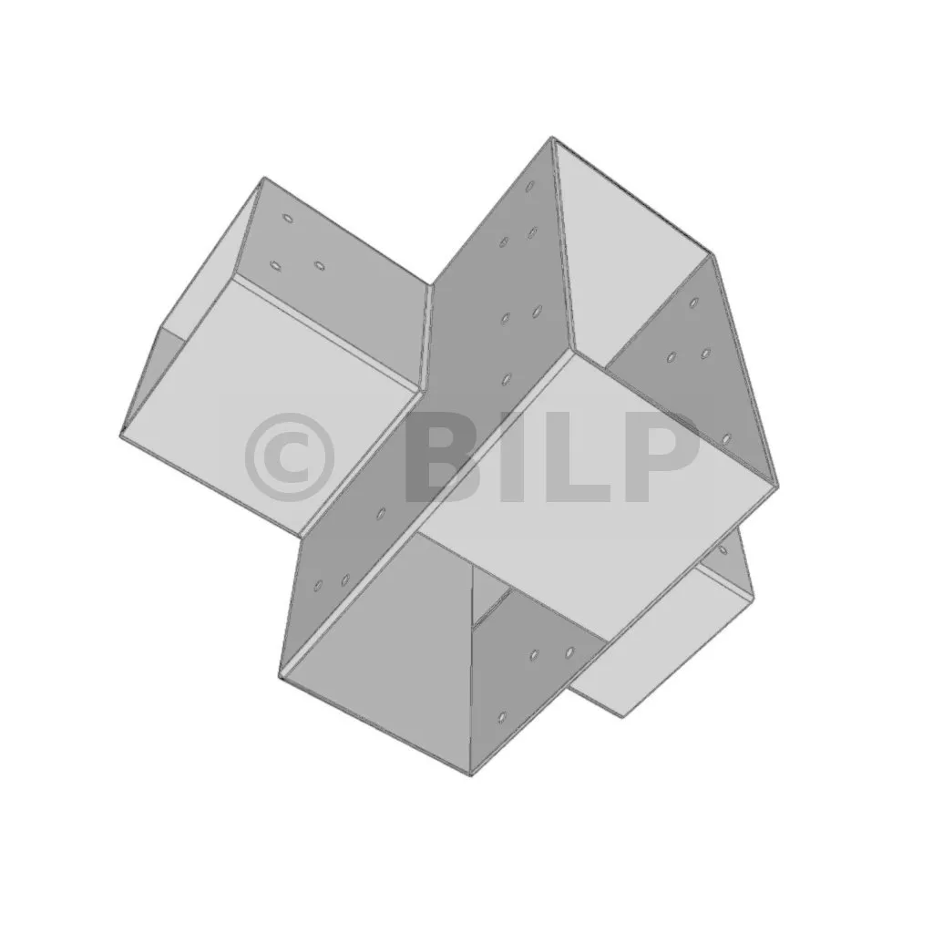 Es ermöglicht die senkrechte Verbindung von zwei 120 x 120 mm großen Balken zu einem großen 240 x 120 mm großen Balken, wobei das Ganze von einem 120 x 120 mm großen vertikalen Pfosten getragen wird.