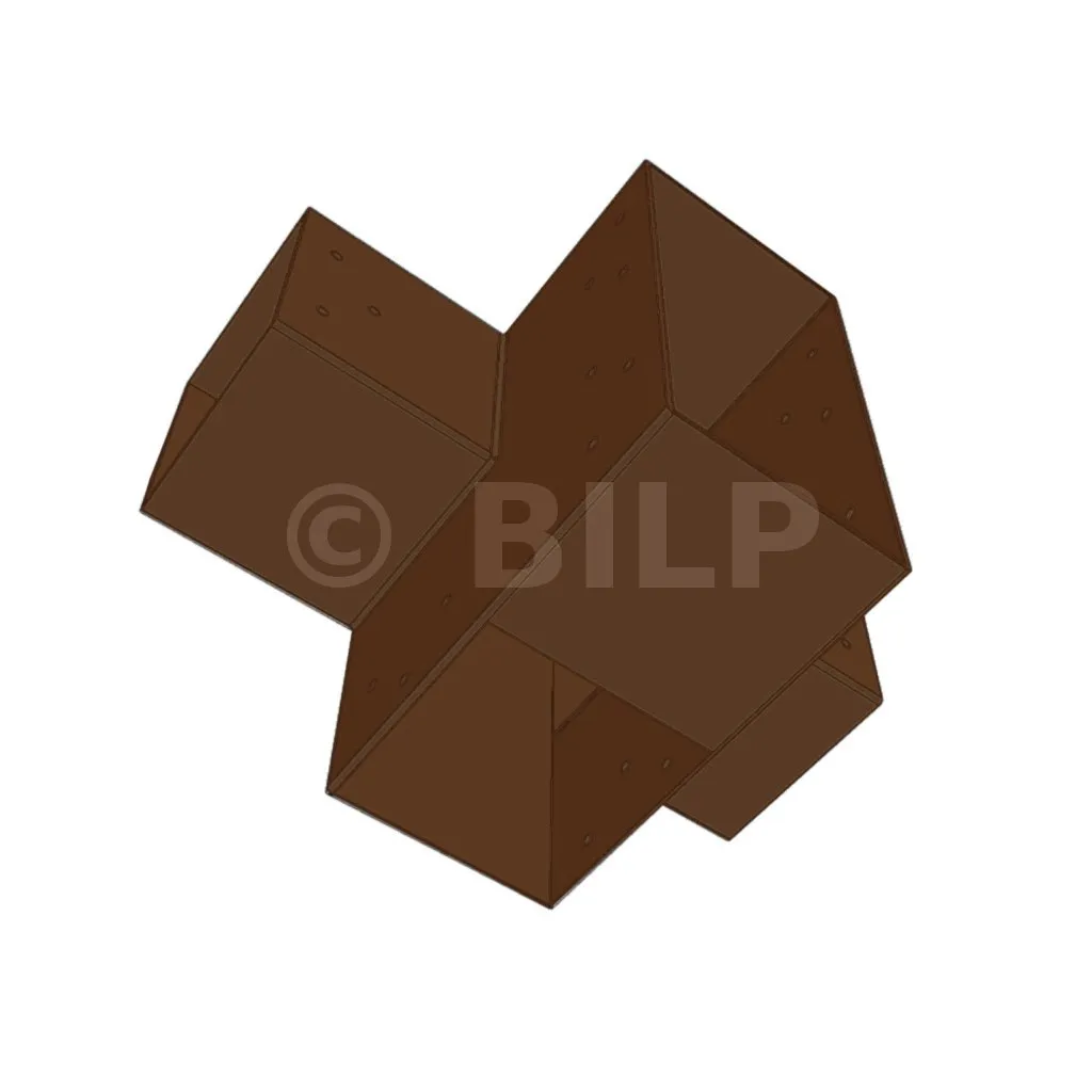 Es ermöglicht die senkrechte Verbindung von zwei 120 x 120 mm großen Balken zu einem großen 240 x 120 mm großen Balken, wobei das Ganze von einem 120 x 120 mm großen vertikalen Pfosten getragen wird.