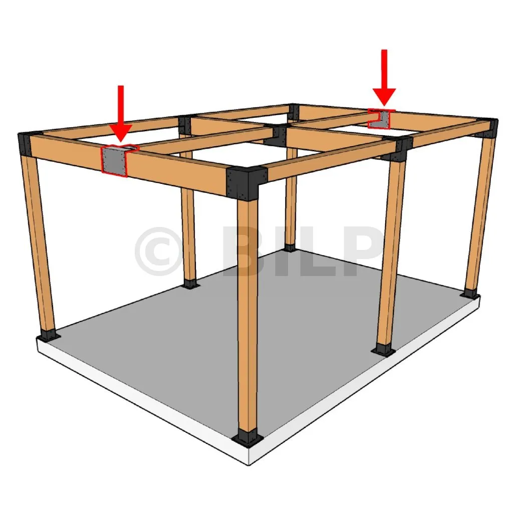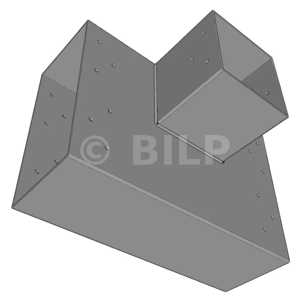 Es wird verwendet, um einen 120 x 120 mm großen Balken senkrecht mit einem großen 240 x 120 mm großen Balken zu verbinden, OHNE dass er von einem vertikalen Pfosten getragen wird.