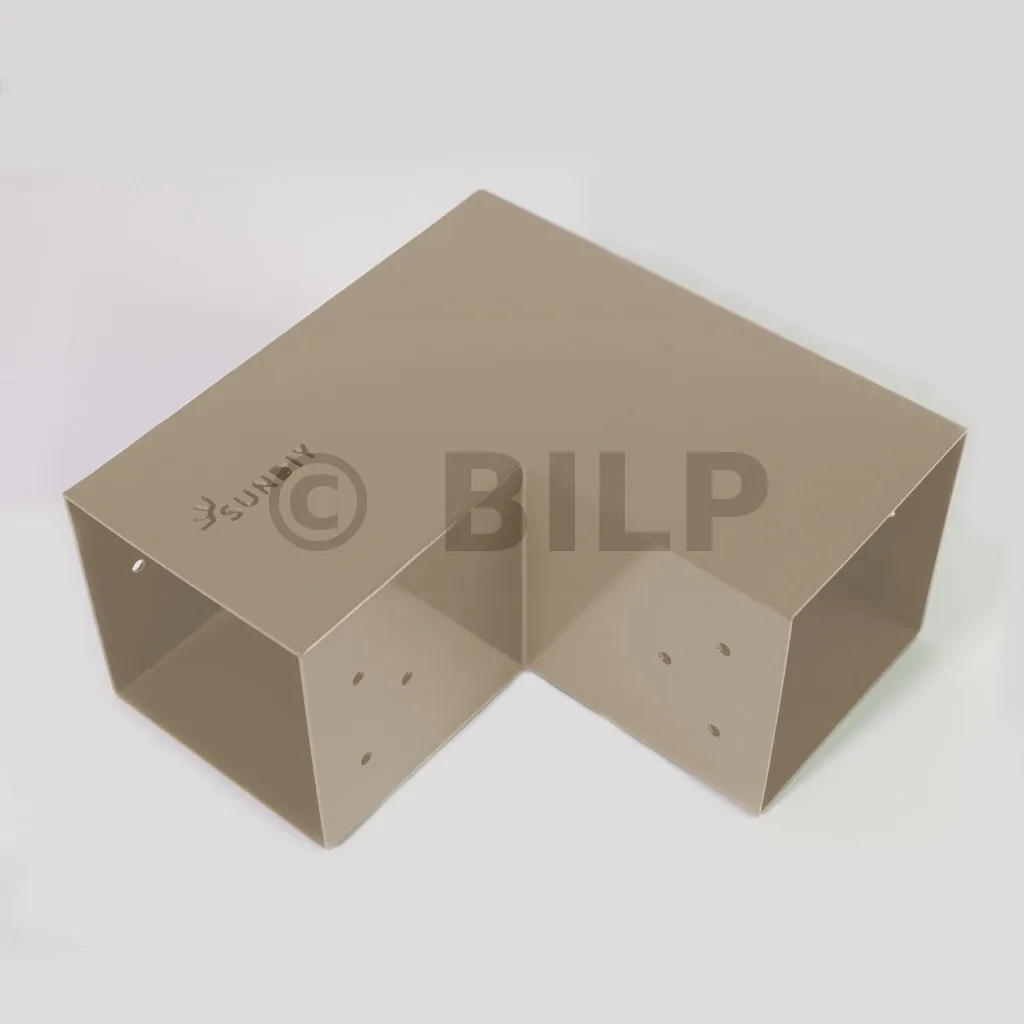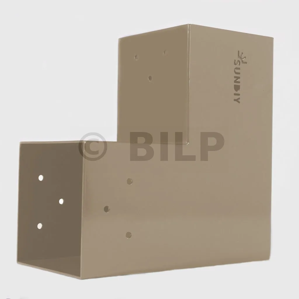 Es wird in einer Außenecke verwendet. Mit diesem Verbinder können Sie einen 90 x 90 mm großen Balken senkrecht mit einem anderen Balken oder mit einem 90 x 90 mm großen vertikalen Pfosten verbinden.