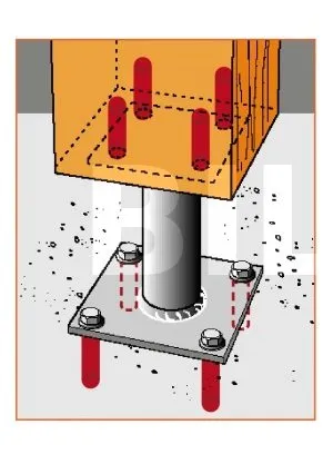 - Chemische Verankerung : Verbundmörtel AT-HP + Gewindestange LMAS M10-120/25.