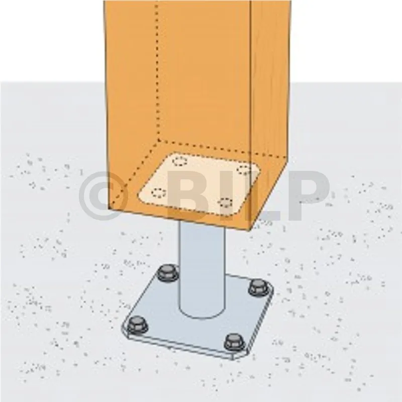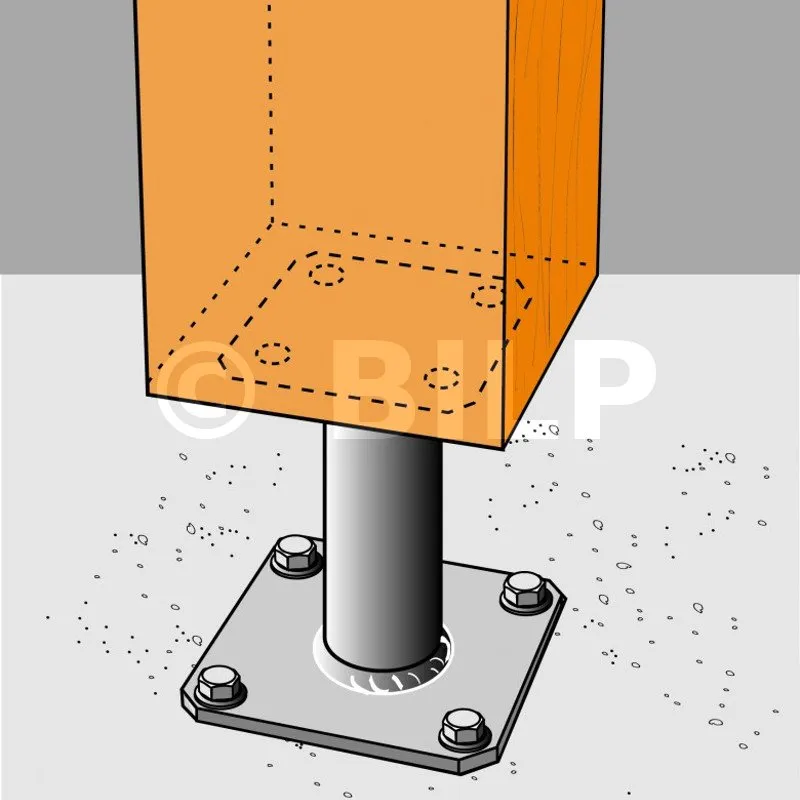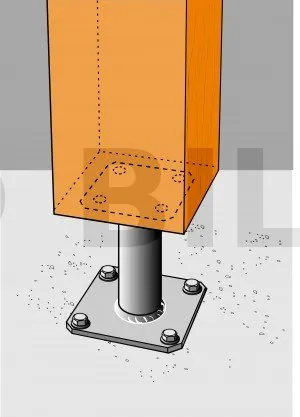 2. Befestigen Sie diese Fußplatte mit LAG-Sechskant-Holzschrauben am Pfosten (Vorbohren erforderlich).