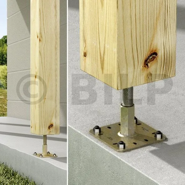 2. Befestigen Sie diese Platte mit Sechskant-Holzschrauben LAG am Pfosten (Vorbohren erforderlich).