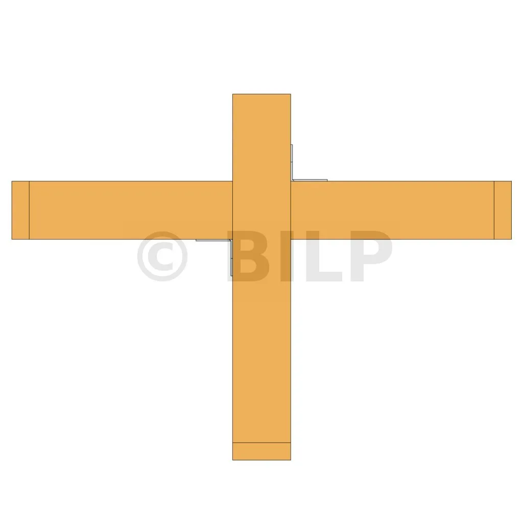 - Befestigung von sich im 90°-Winkel kreuzenden Holzelementen.