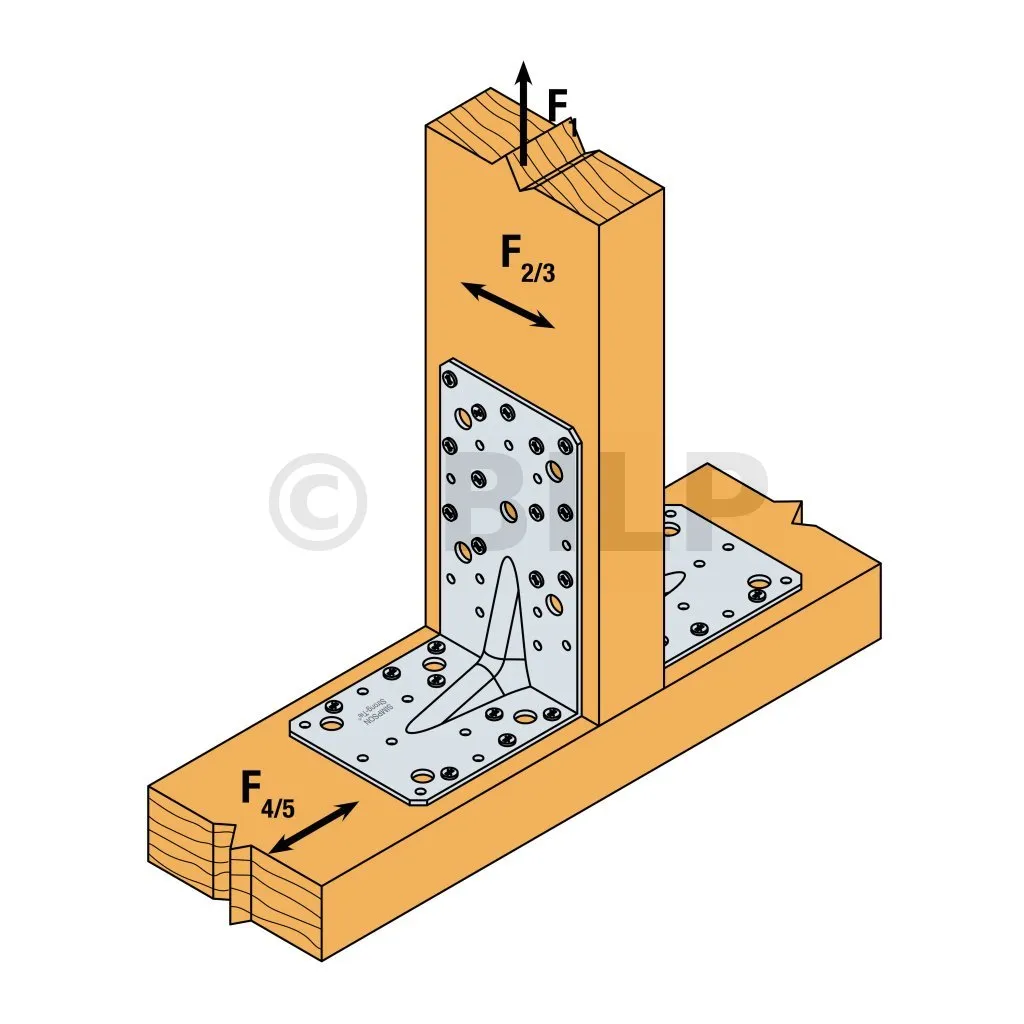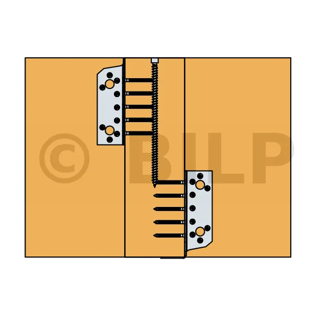 - HOLZ/HOLZ-Befestigung - Totalvernagelung2 équerres ; Aile A : 12CNA Ø4.0x35 ou Ø4.0x50 mm ; Aile B : 8CNA Ø4.0x35 ou Ø4.0x50 mm