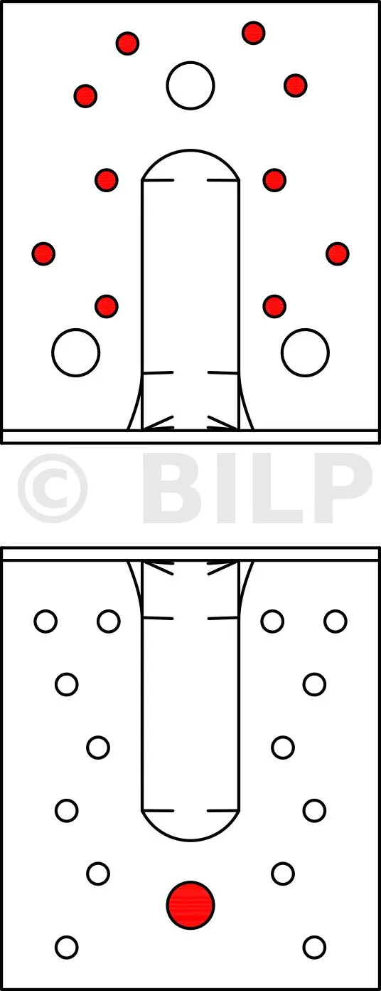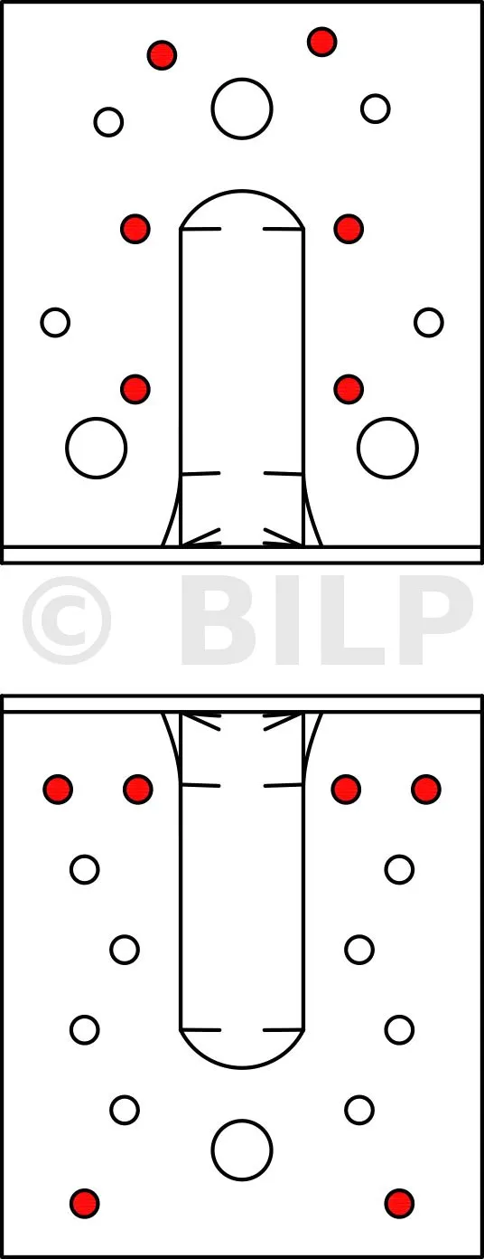 - HOLZ/HOLZ-Befestigung - TeilvernagelungAile A : 6 ; Aile B : 6 ; type : Pointes annelées CNA Ø4.0x35 ou Ø4.0x50 mm, Vis CSA Ø5.0x35 ou CSA Ø5.0x40