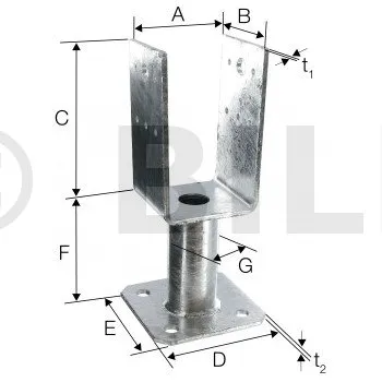 U-Pfostenträger mit Platte - Réf. PPUP70_10