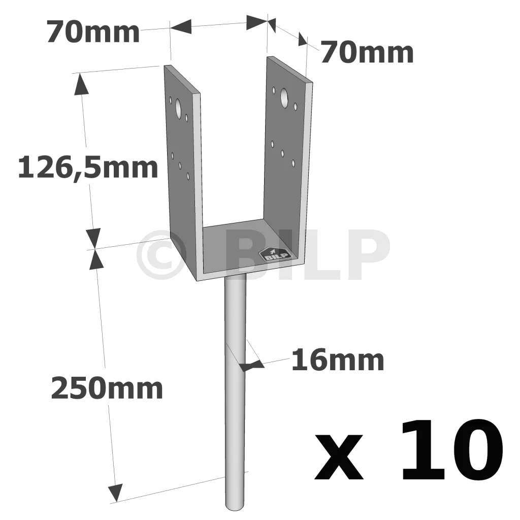 U-Pfostenträger zum Einbetonieren - Réf. PPD70/70G_10