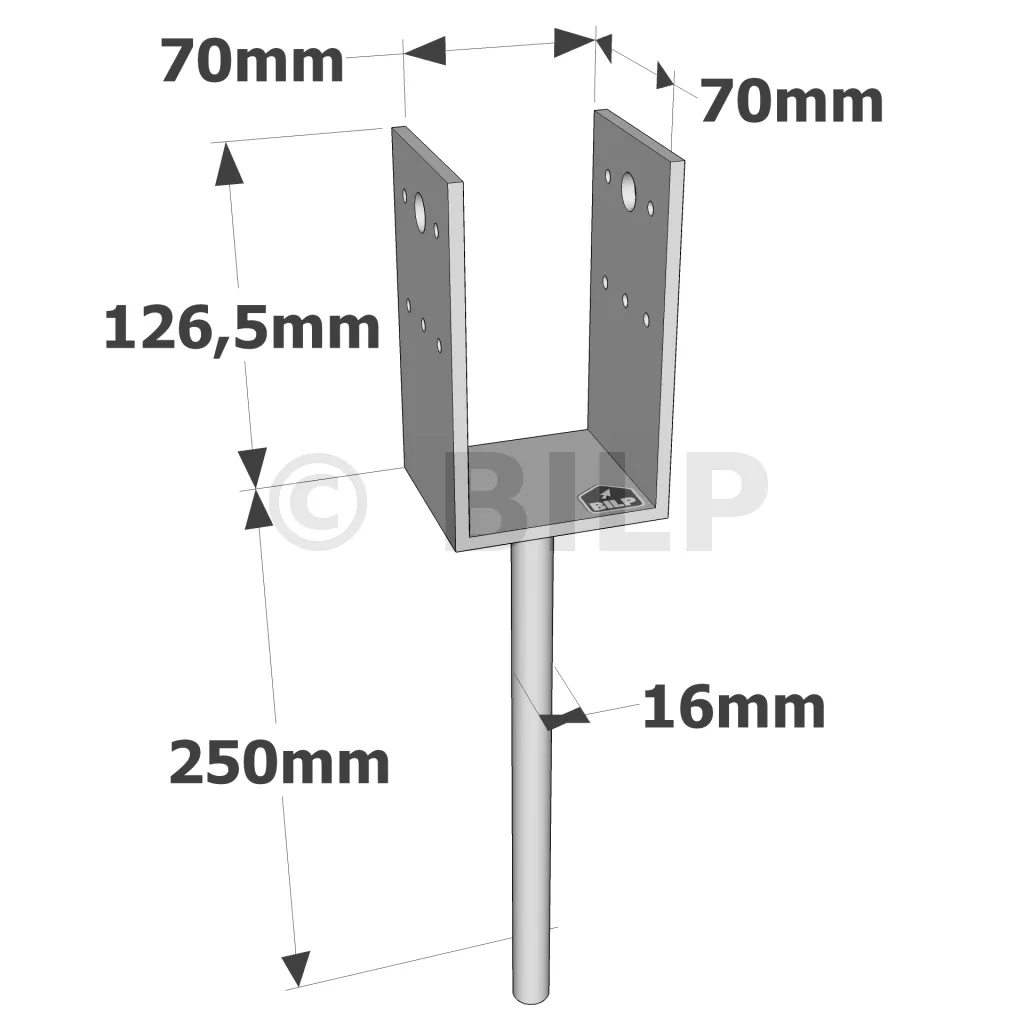 U-Pfostenträger zum Einbetonieren - Réf. PPD70/70G