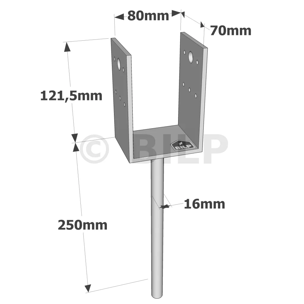 U-Pfostenträger zum Einbetonieren - Réf. PPD80/70G