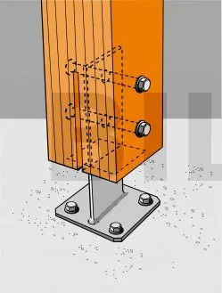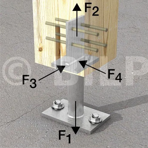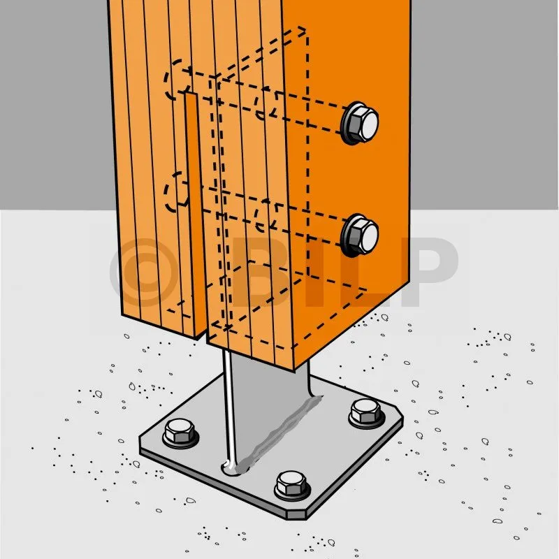 - Holzverbindung auf starrem TrägerSur poteau : 2 STD12 ; sur béton : 4Ø10 (goujons WA M10 ; tige filetée M10) ; sur acier : boulons