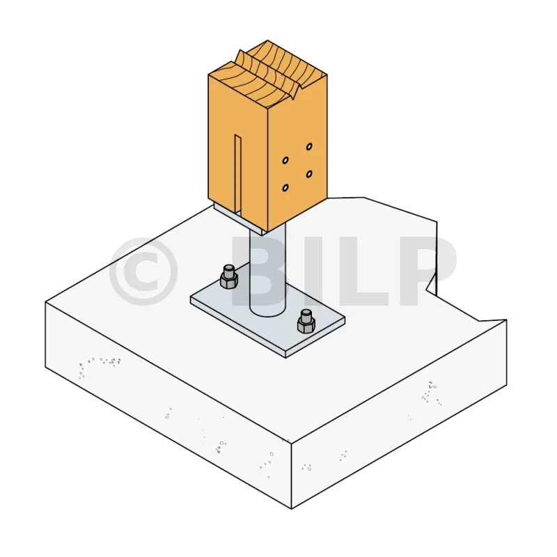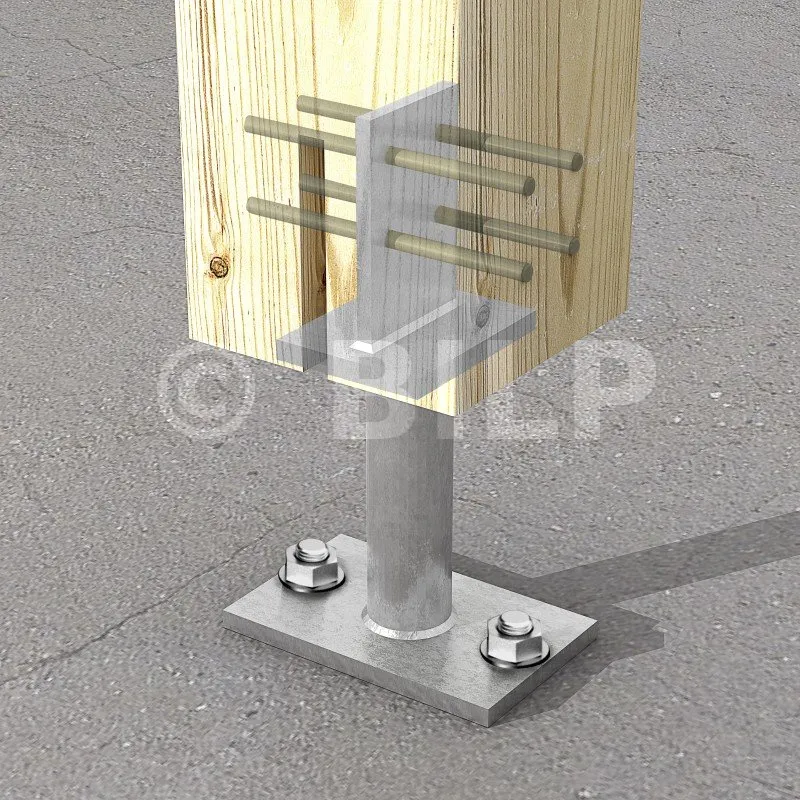 - Holzverbindung auf starrem TrägerAuf Pfosten : 4Ø8 (STD-Stabdübel) ; auf Beton : 2Ø12 (WA-Dübel ; Gewindestange)