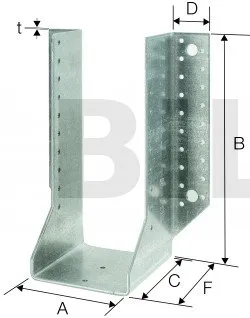 Im Gegensatz zum GSE werden die GSEXL-große Breite Balkenschuhe mit außenliegenden Schenkeln für Breiten von 201 mm bis 270 mm verwendet.