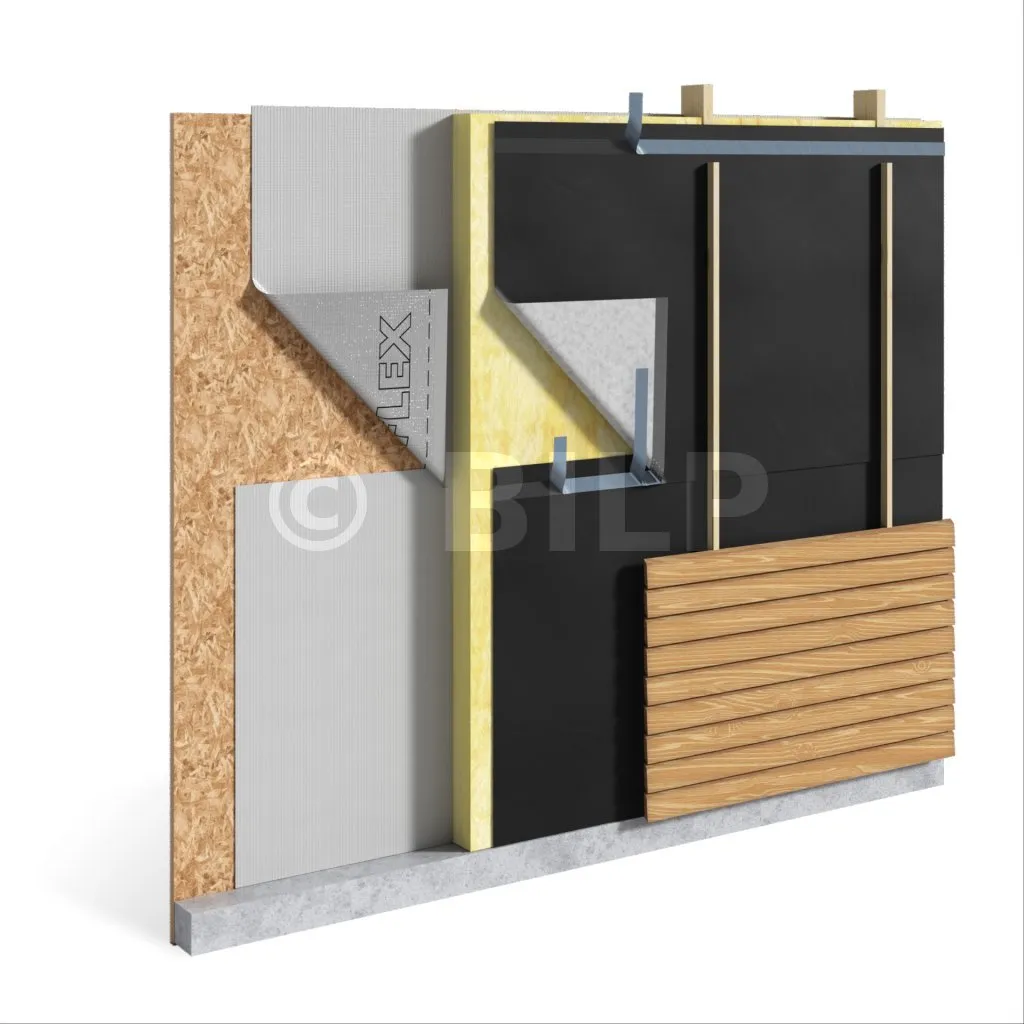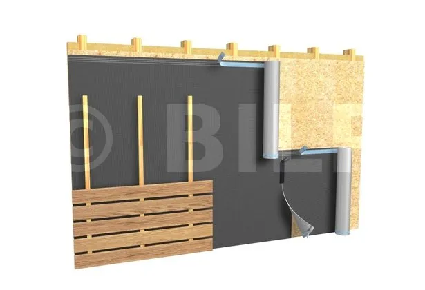 Die Verklebung von Überlappungen und Seitenfugen wird empfohlen, insbesondere bei Anwendungen hinter Lamellenfassaden.