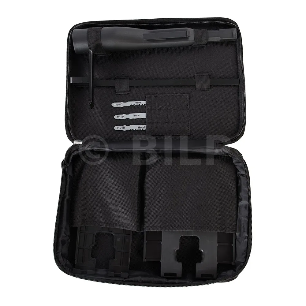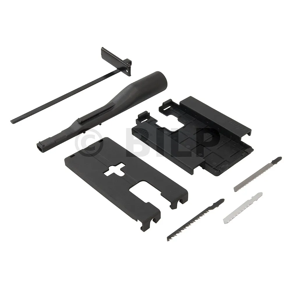 - Mit drei Hochleistungsstichsägeblättern für Kurvenschnitte in Holz, Schnitte mit hoher Geschwindigkeit in Holz und Kunststoff sowie Geradschnitte in Eisen- und Nichteisenmetallen