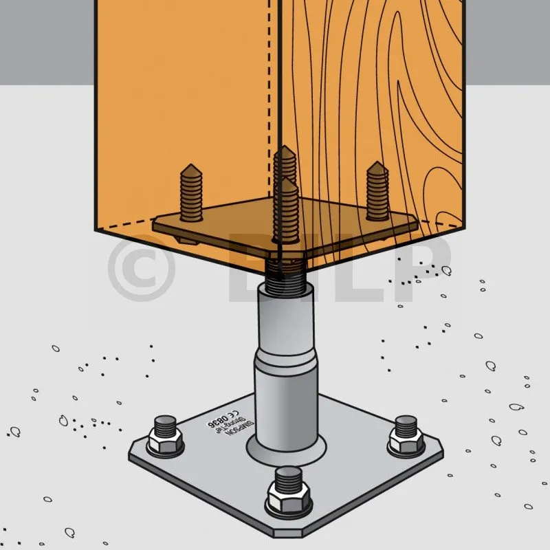 - Holz-/starre Stützenbefestigung - Träger-/starrer StützentypAuf Pfostenträger : 4Ø10mm - auf Beton : 4Ø10mm