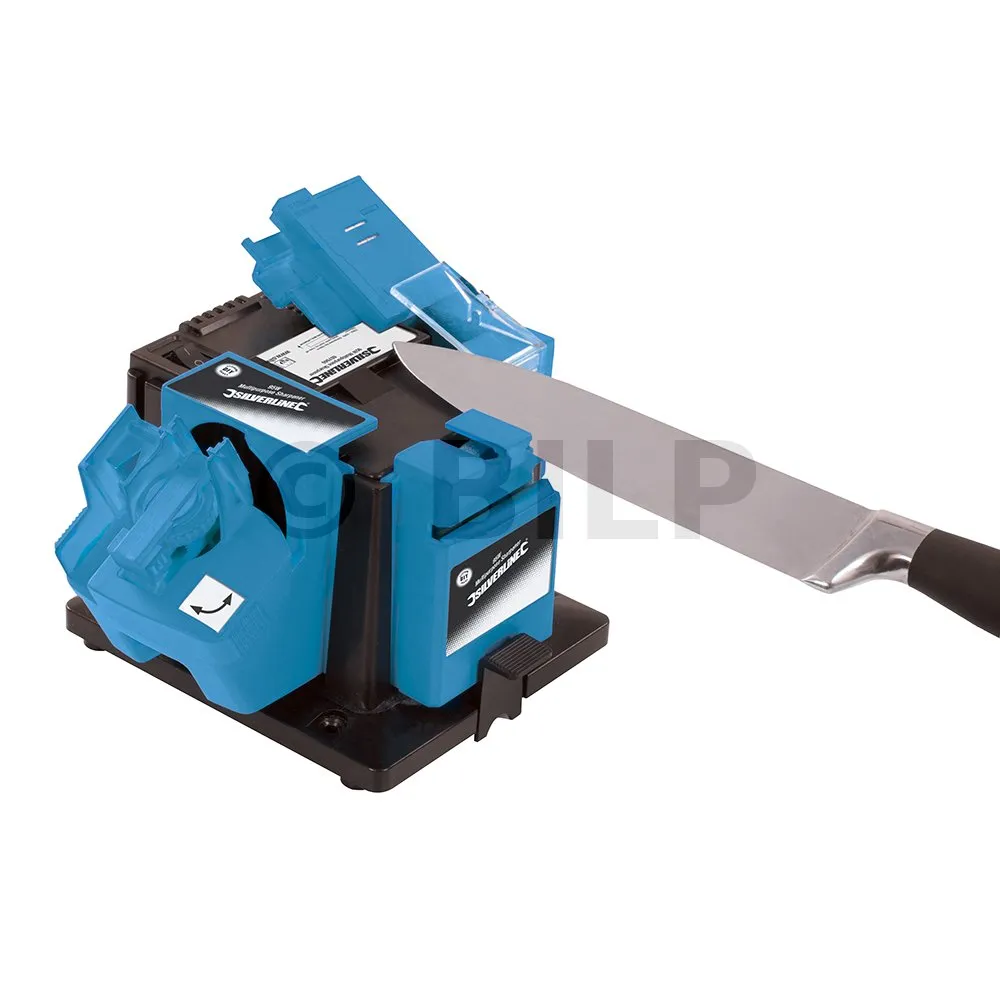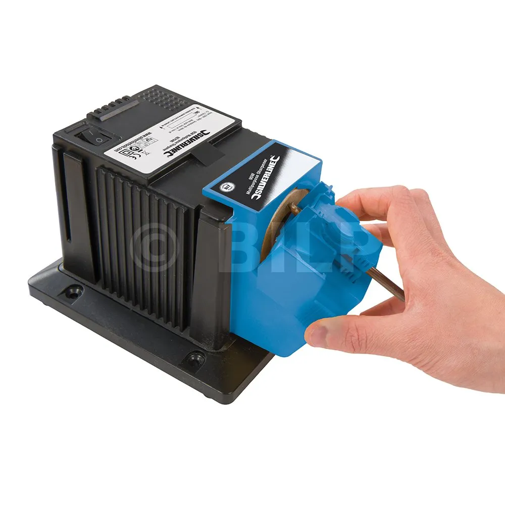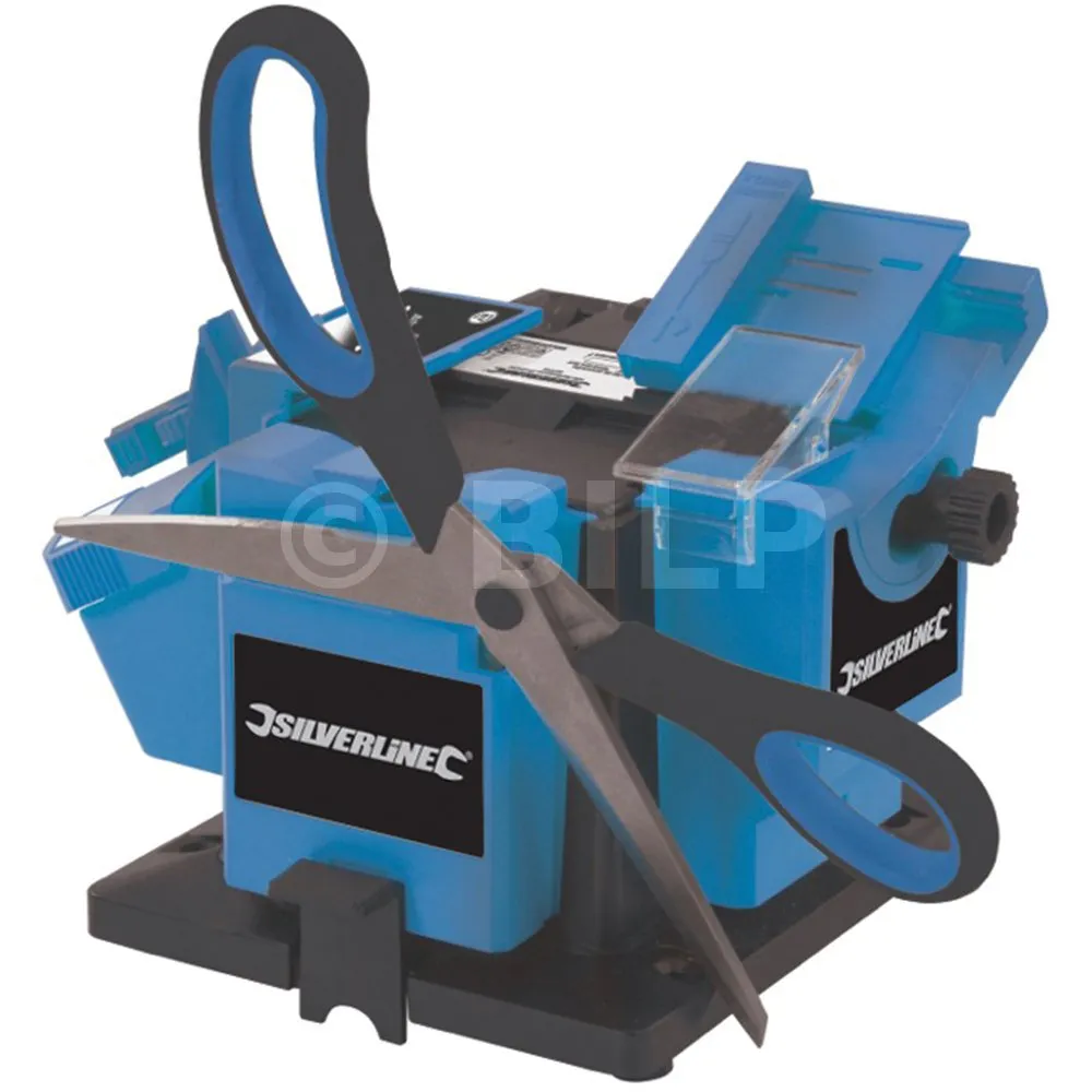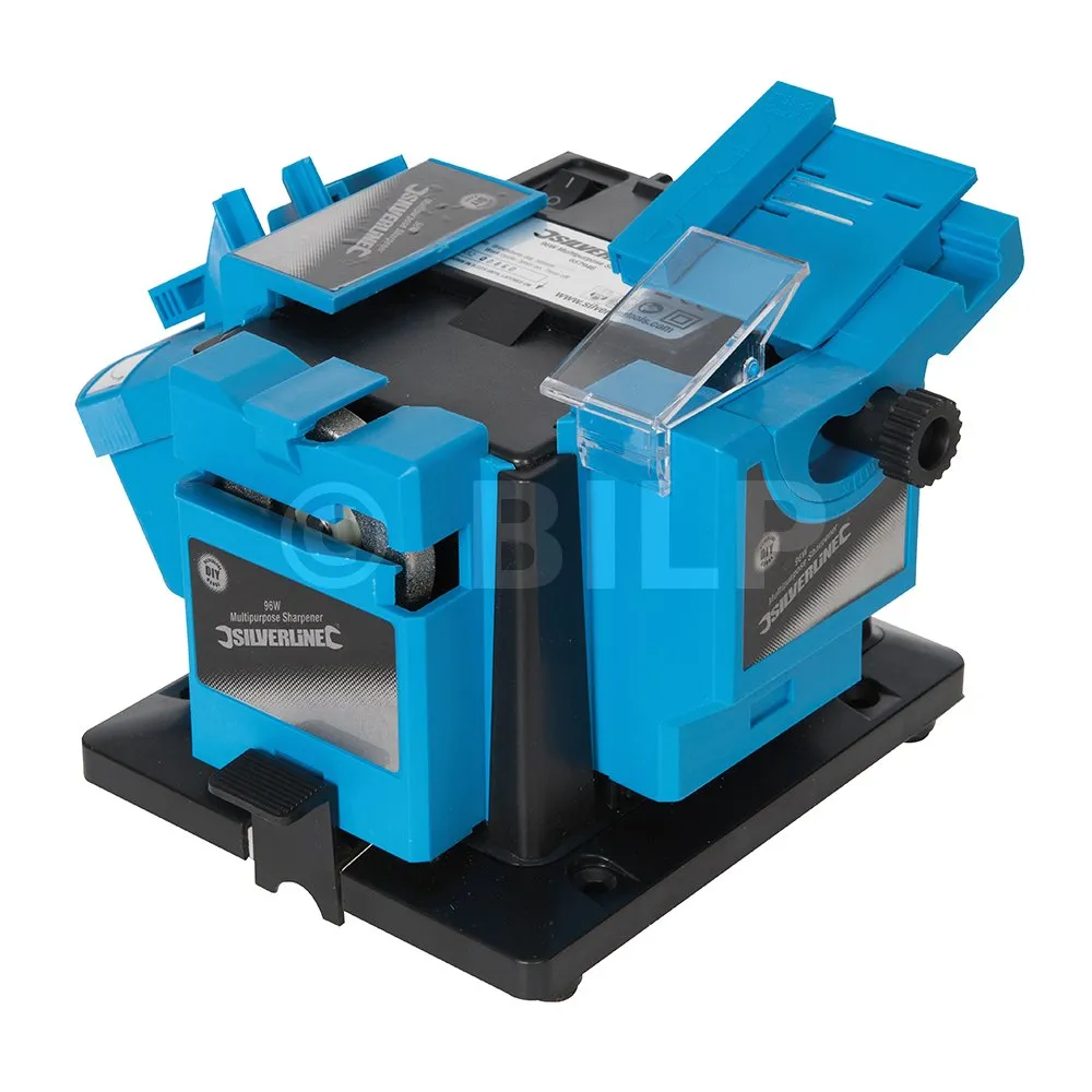 Schärft Hartstahlbohrer, Meißel, Messer, Scheren, Hobeleisen und andere Klingen. Inklusive Vorrichtungen zum präzisen Einstellen von Schärfwinkeln. Schärft schnell und genau : Hartstahlbohrer von 3–13 mm Durchmesser und Klingen von 6–51 mm Breite. Vielseitig und einfach zu bedienen. Ersatzschleifräder erhältlich.
