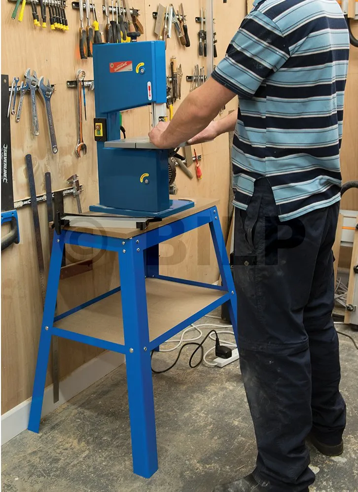 Solider Stahlrahmen mit eingebautem Regal und strapazierbarer Pulverbeschichtung. Stabiler Ständer für Kreissägen, Kapp- und Gehrungssägen und Tischbohrmaschinen. Für Maschinen unterschiedlichster Größe geeignet, da die zweiteilige Tischfläche von 360 mm auf 520 mm ausziehbar und mit Winkel- und Längenmarkierungen bedruckt ist. Gummi-Endkappen an den Beinen verringern die Vibration und vermeiden Schäden am Boden.