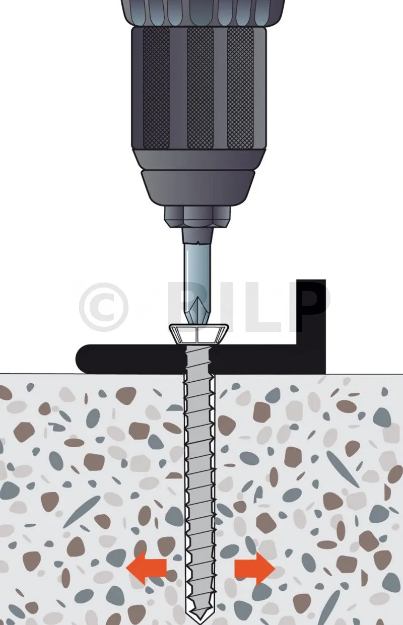 Betonschraube mit GROSSEM Kopf zur Befestigung von Metall/PVC-Unterkonstruktion