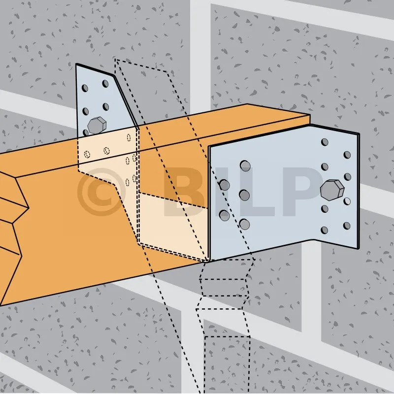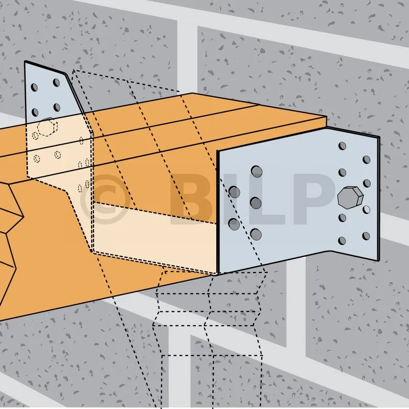Die Verwendung von Balkenträgern wird bei Beton- oder Stahlträgern nicht empfohlen, da die Bolzen überlastet werden und der Abstand der Holzenden von den Bolzen nicht dem Eurocode 5 entspricht.