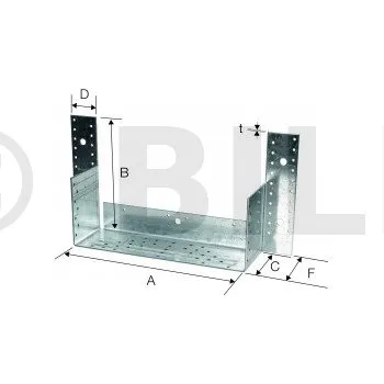 | Artikel | Abmessungen des Trägers [mm] | Abmessungen des Holzträgers [mm] | Abmessungen [mm] | Bohrungen auf Träger | Bohrungen auf den Nebenträger | ||||||||