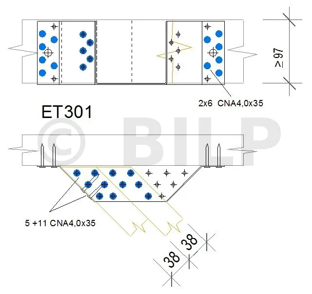 Die Länge der Stabdübel muss kleiner oder gleich der Breite des getragenen Balkens sein.