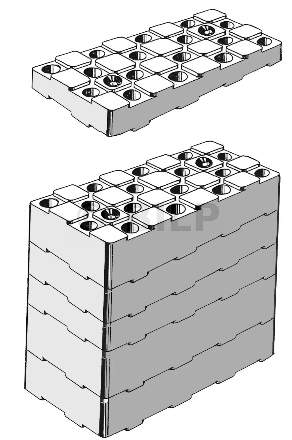 Aus regeneriertem Kunststoff, stapelbar, nach der Einstellung zum Schrauben oder Nageln empfohlen.